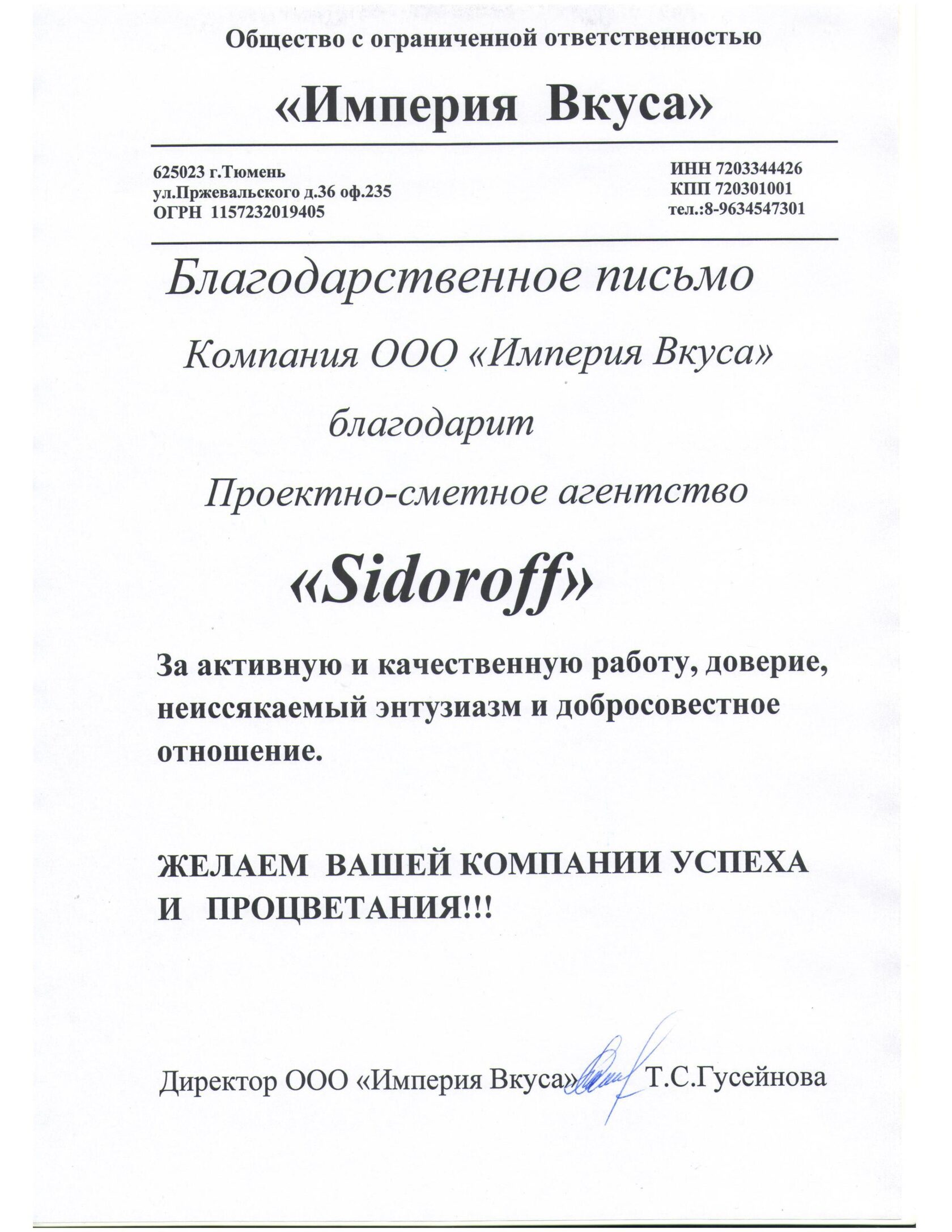 Отзыв компании ООО Империя Вкуса